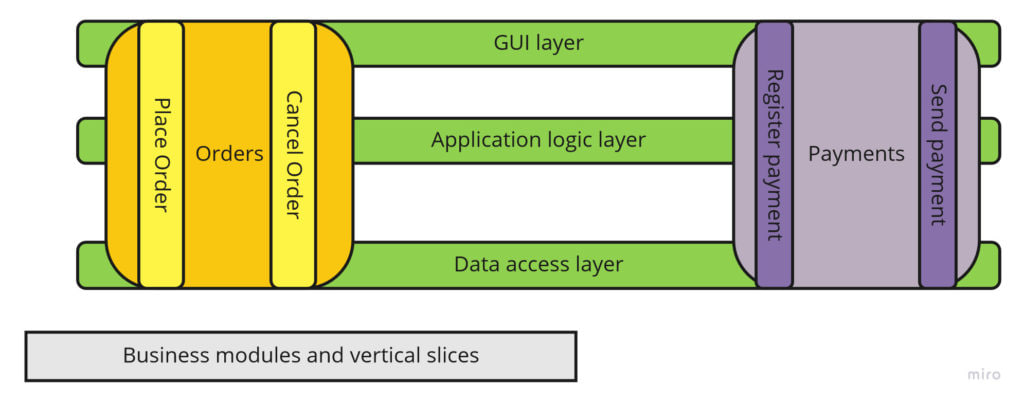 В контексте данной темы технические модули называют «слоями», а модули БЛ «модулями», так как чаще всего изменения и разработка касаются бизнес логики — добавляются новые фичи, изменяется поведение старых и тому подобное.